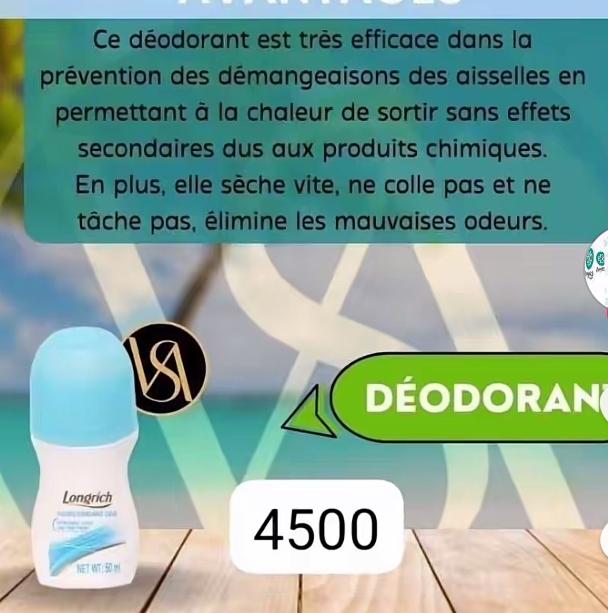 Le déodorant anti-transpirant Longrich est un produit à bille de 50 ml conçu pour offrir une protection longue durée contre la transpiration et les mauvaises odeurs. Sa formule douce, adaptée à tous types de peau, contient de l’eau, de l’alcool, de l’allantoïne et de la poudre de jus de feuilles d’aloès, ingrédients reconnus pour leurs propriétés hydratantes, anti-irritantes et cicatrisantes